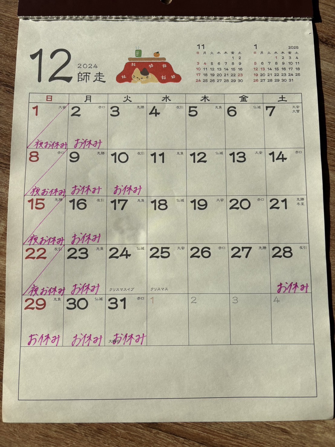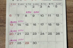 12月のお休みになります年末は年越しオードブルの仕込みにより12/28(土)よりお休みとなります年明けは1/4(土)から営業予定ですよろしくお願い致します。