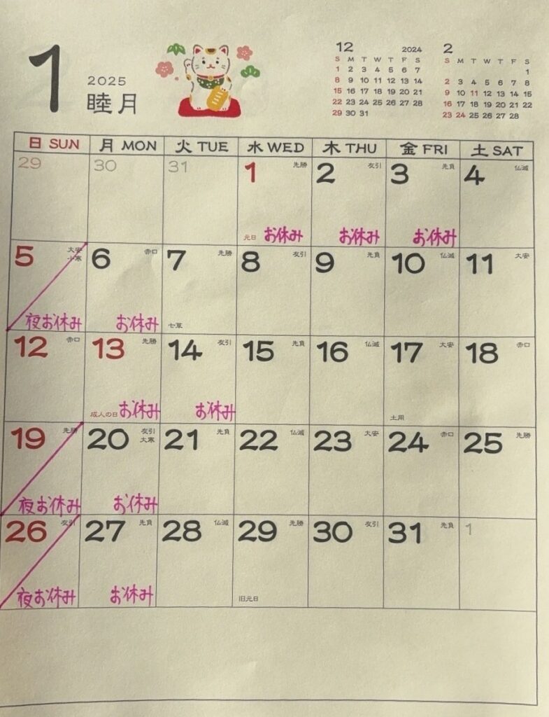1月のお休み