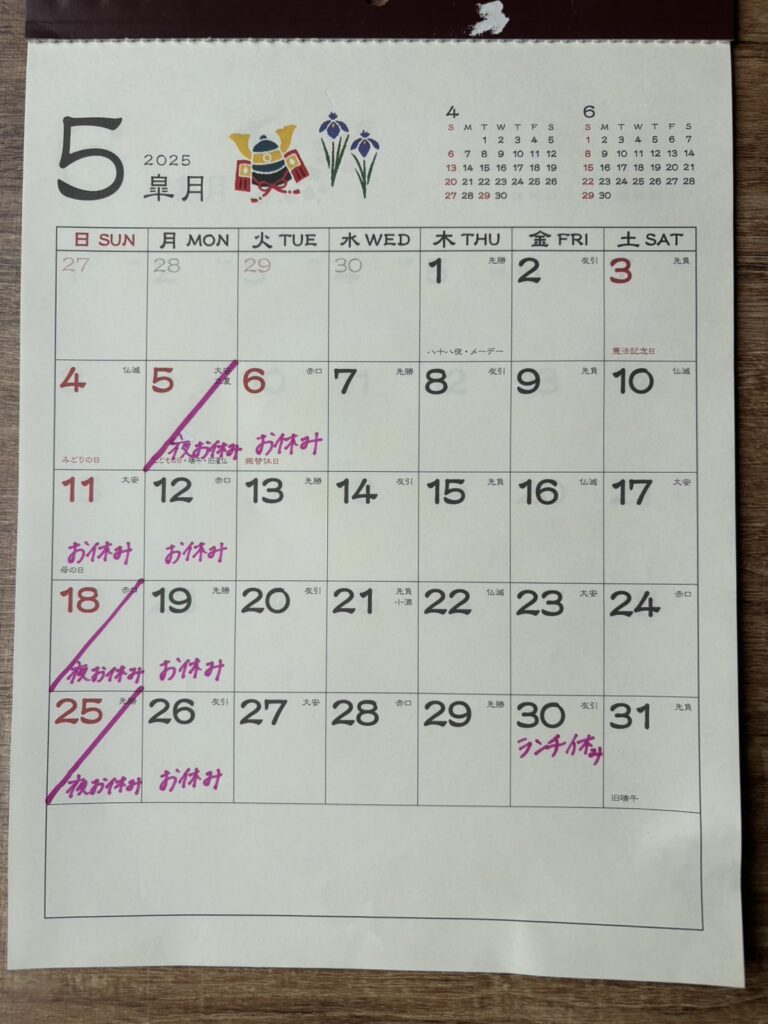 5月のお休みになります